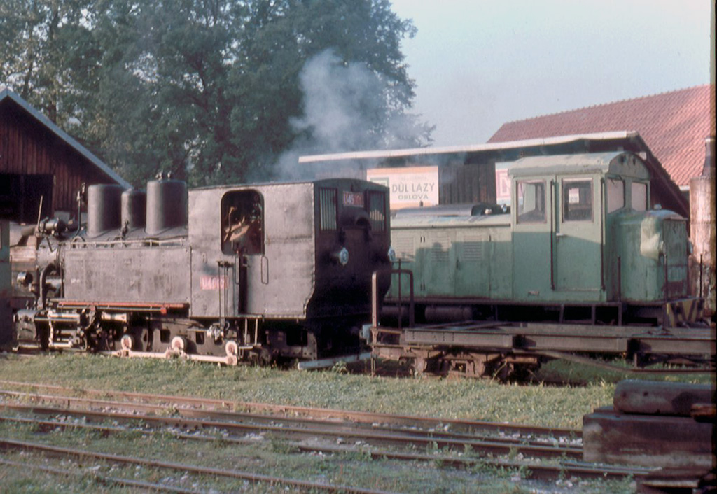 Lokomotivy Rába M042 a BNE50 ve stanici Čierny Balog