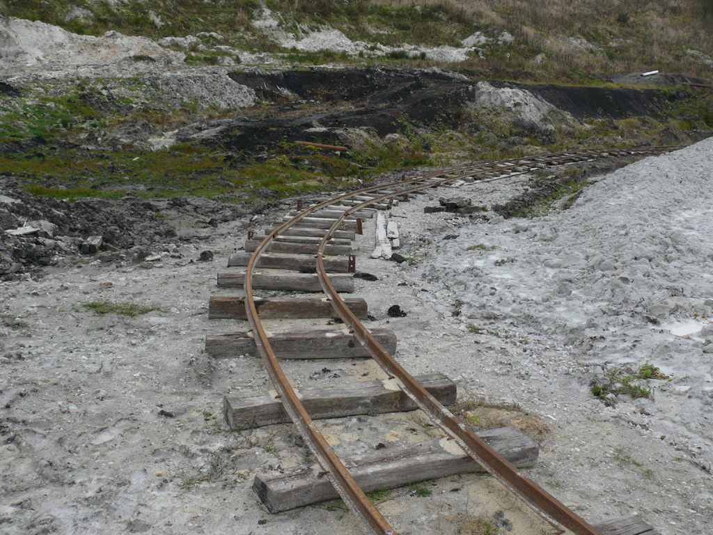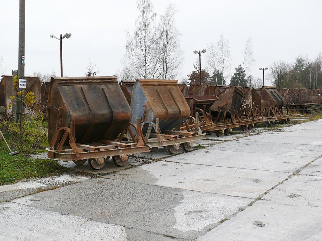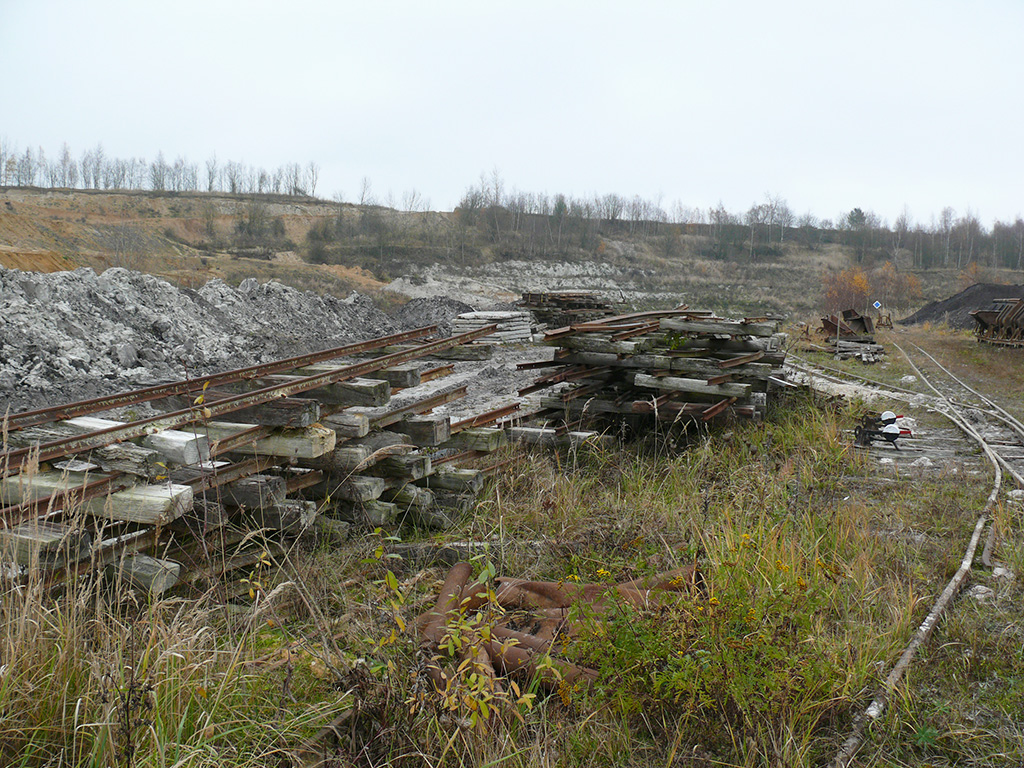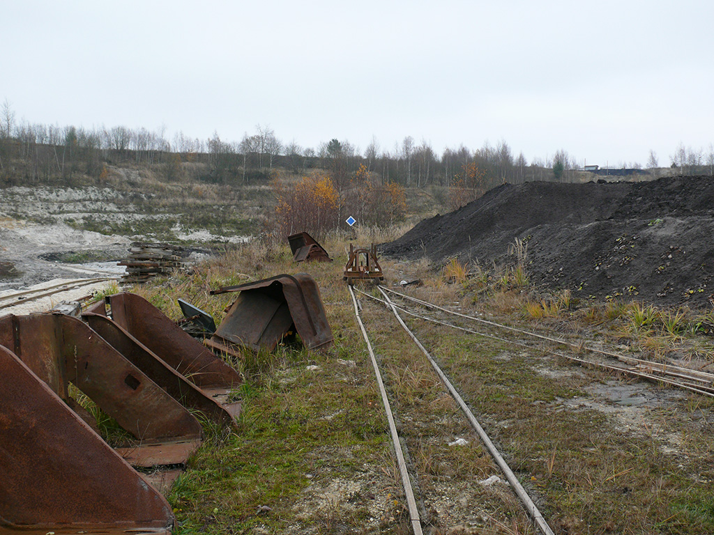 Vozy a lokomotivy odstavené v těžebním prostoru na Nové Vsi