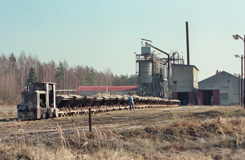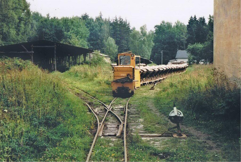 BN30 L2 (017) se soupravou ložených vozů ve zpracovatelském závodu ve Vonšově