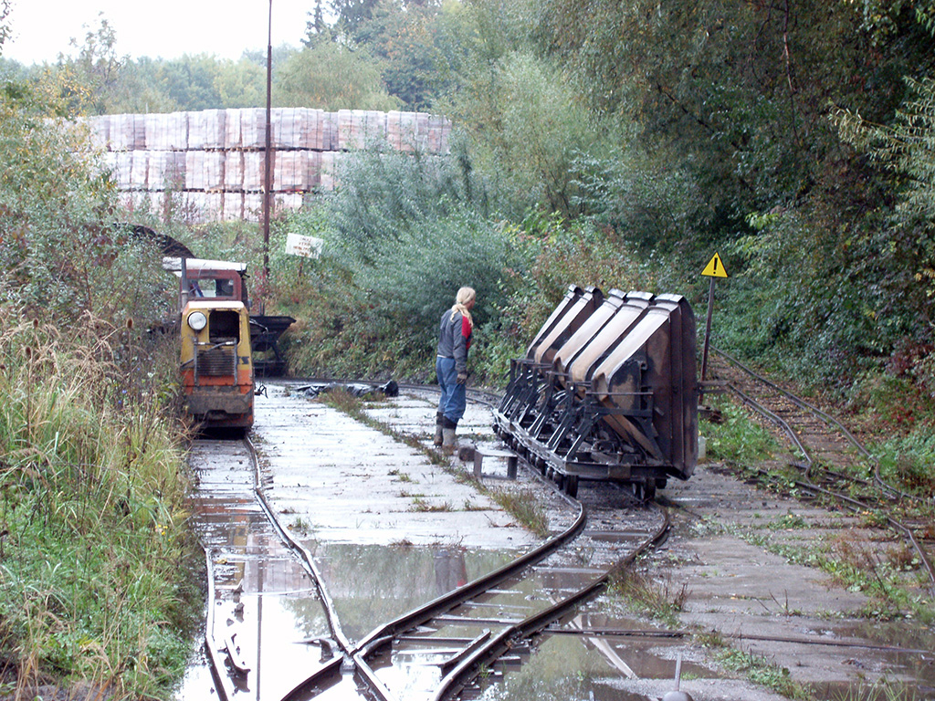 Výklopné vozy odstavené mimo koleje v areálu cihelny