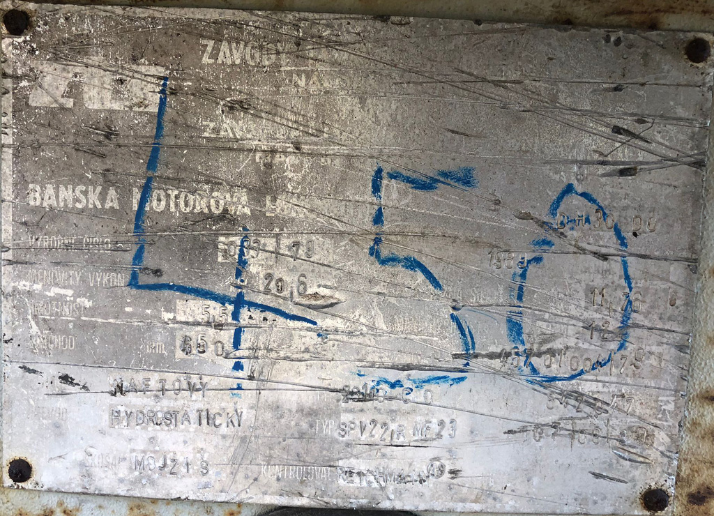 - Lokomotiva má na štítku vyraženo výrobní číslo 033/79 a rok výroby 1989. Číslovka za lomítkem u výrobního čísla značila rok výroby. Zde tedy není jasné o jaký rok výroby se jedná.