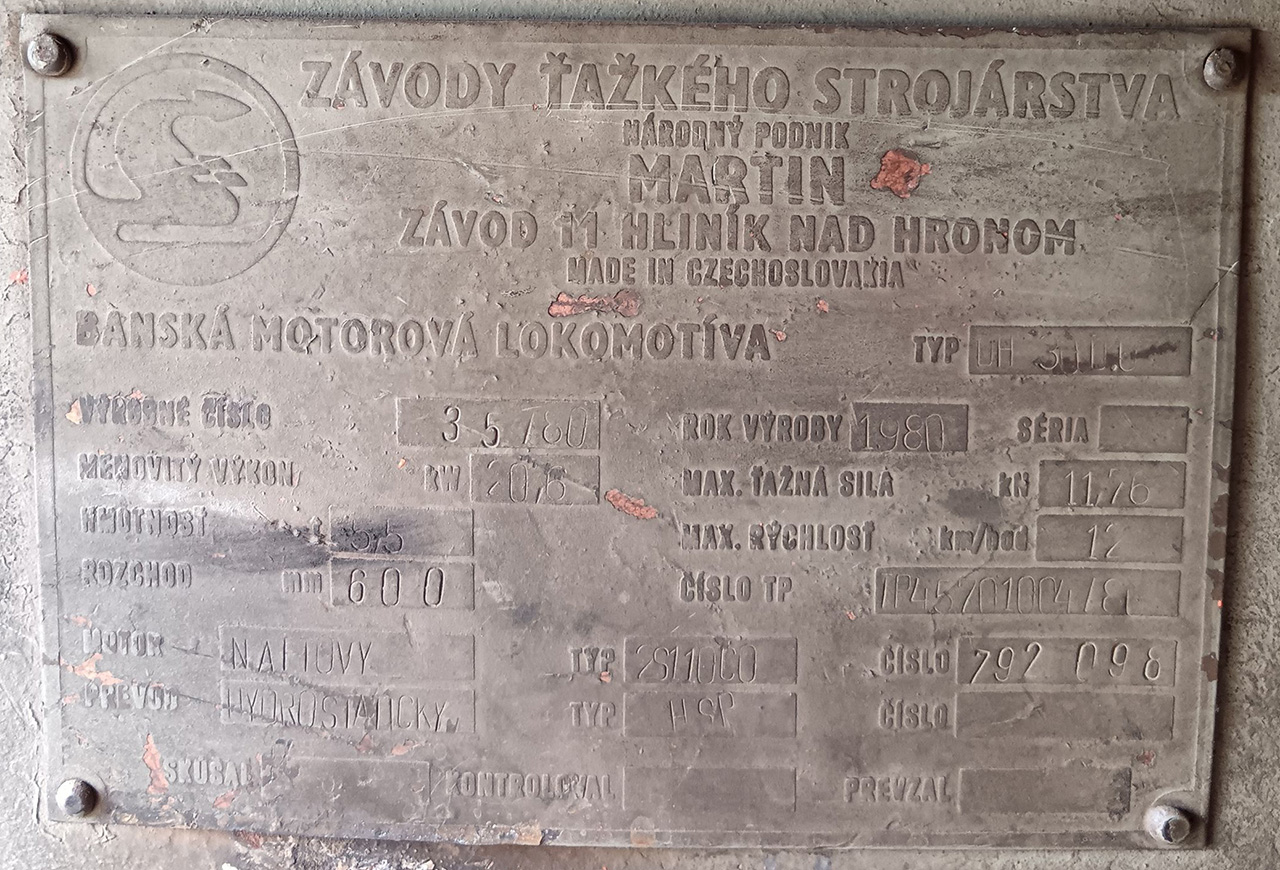Provozována: Uhelný důl Cigeľ (SK), provoz na rozchodu 600 mm pod číslem 2