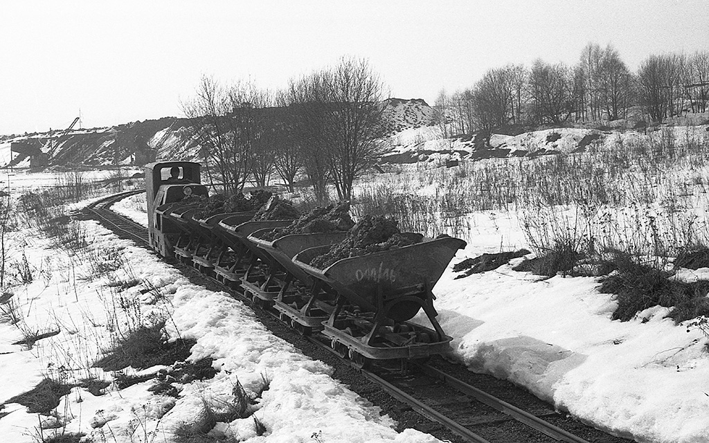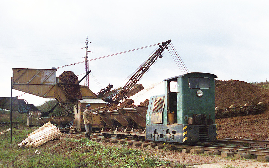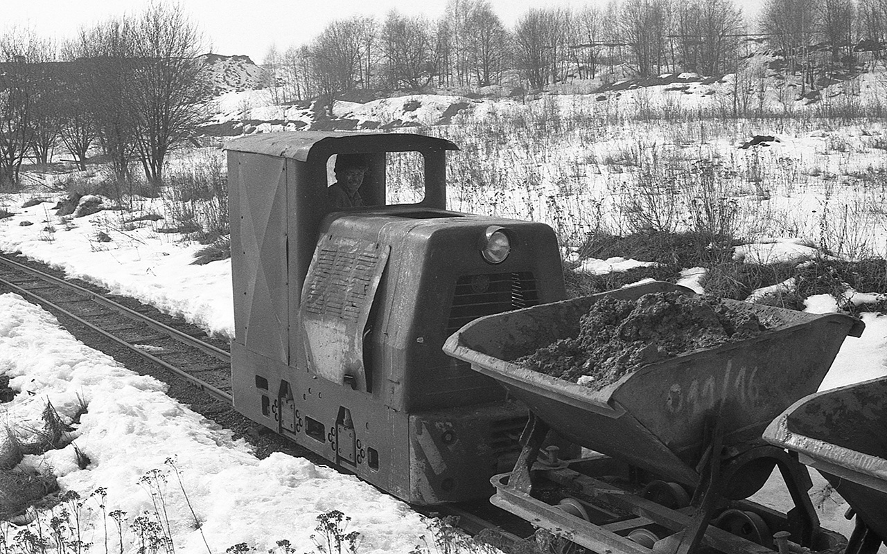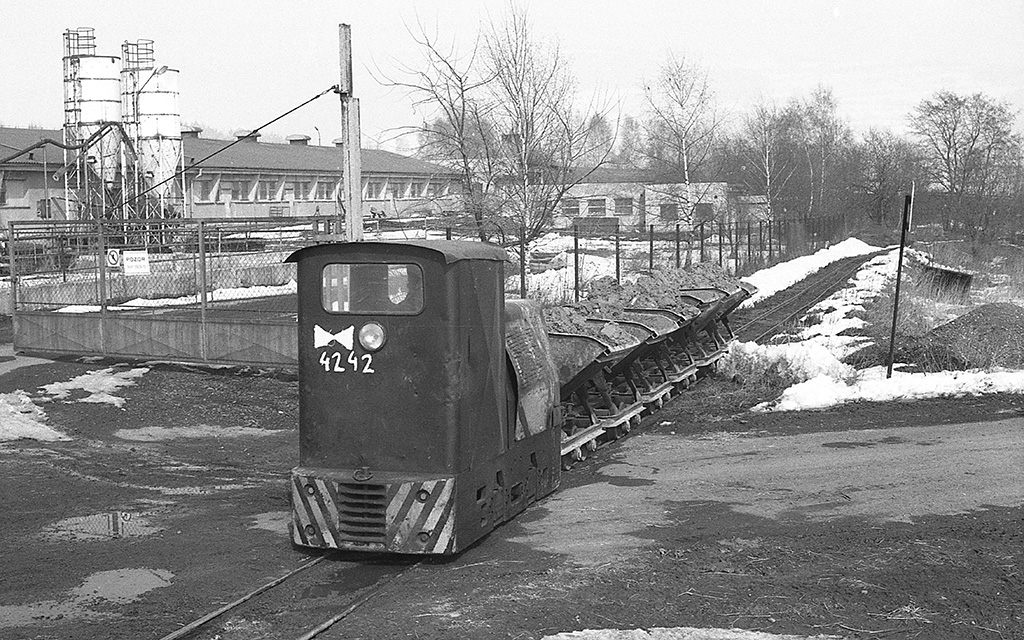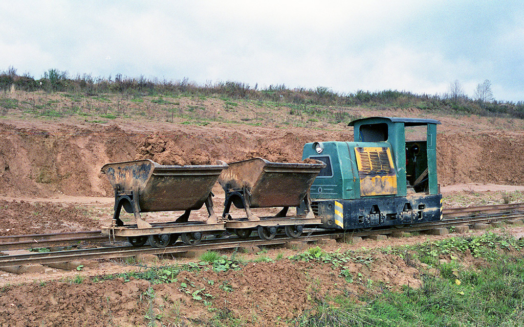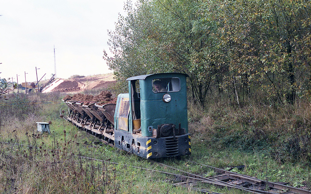 BN30R (009) s dvojicí naložených vozů v hliništi cihelny