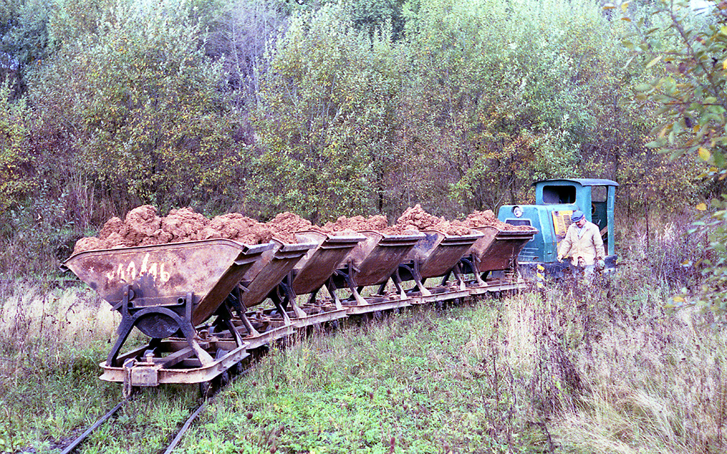 BN30R (009) odváží soupravu naložených vozů z hliniště
