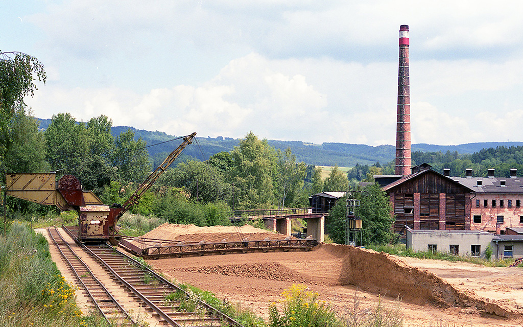Lokomotiva BN30R (009) během nakládky vozů pod korečkovým rypadlem v hliništi