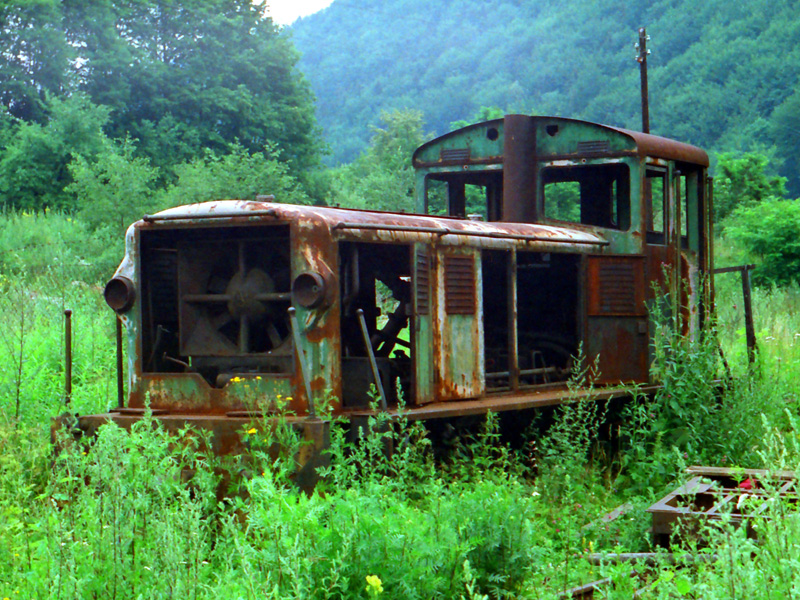 Vrak lokomotivy DH70D.1 ve stanici Čierny Balog