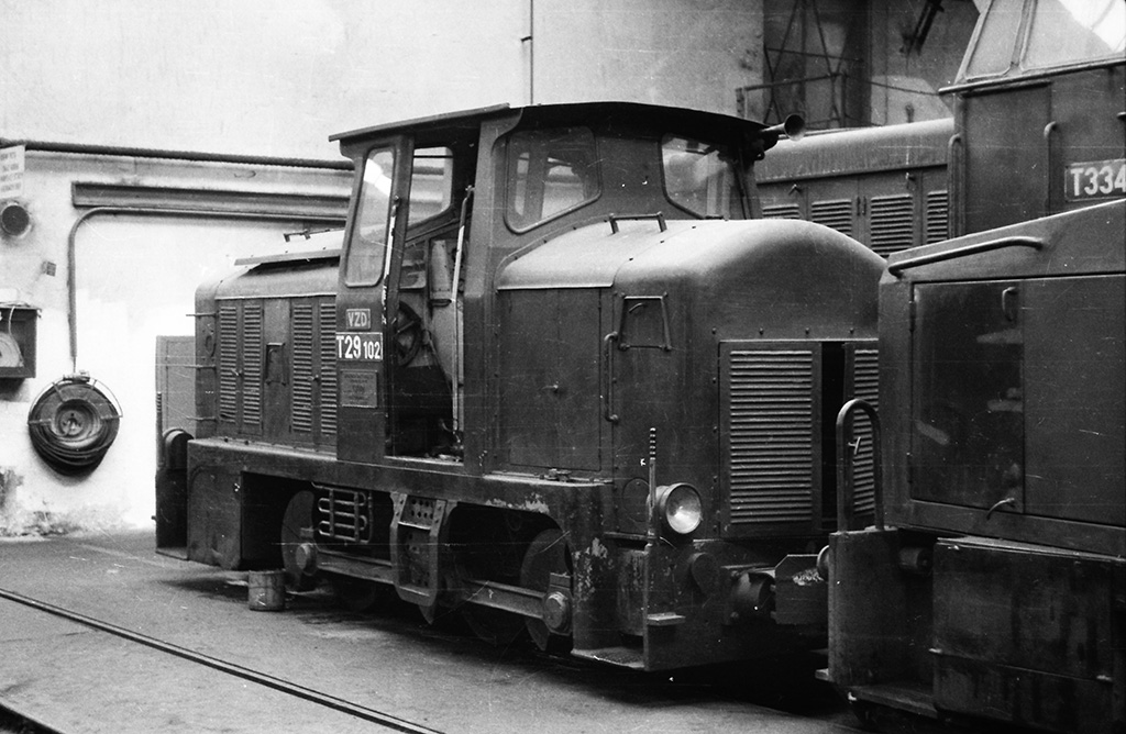 Lokomotiva T29.102 typu LDH240s od rakouského výrobce Simmering-Graz-Pauker (SGP) odstavená v depu