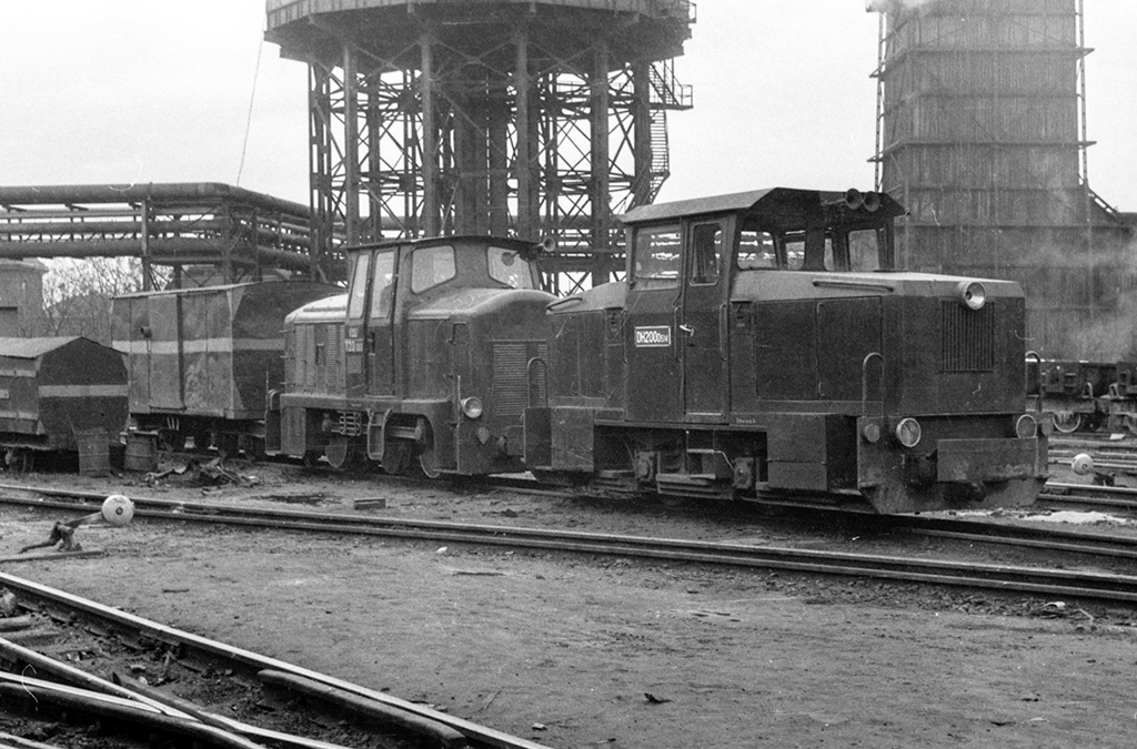 Zánovní lokomotivy DH200.0506 a 0509 odstavené v areálu železáren