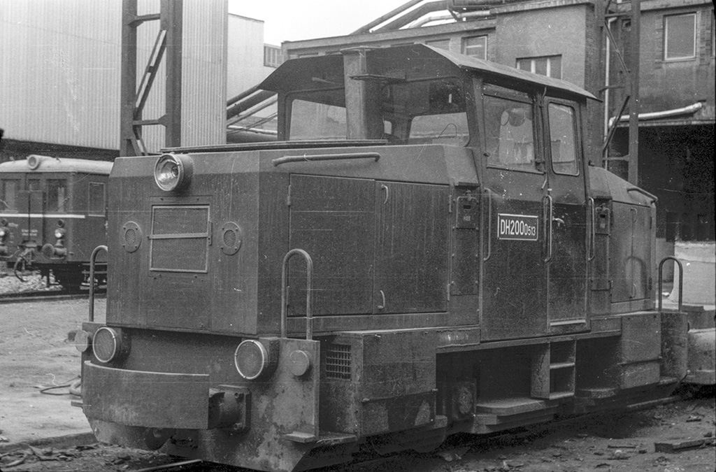 Lokomotivy DH200 odstavené v depu po boku normálněrozchodného stroje řady T458.1