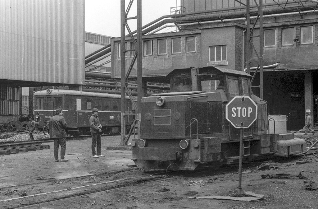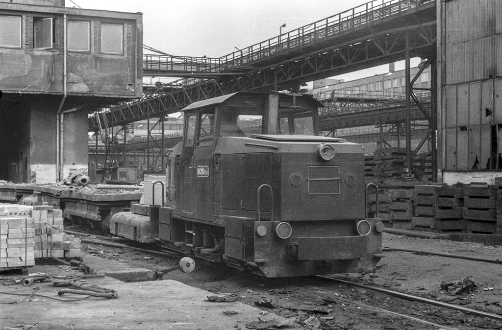 Lokomotiva DH200.0509 (007) spolu s dalšími stroji odstavená v areálu železáren