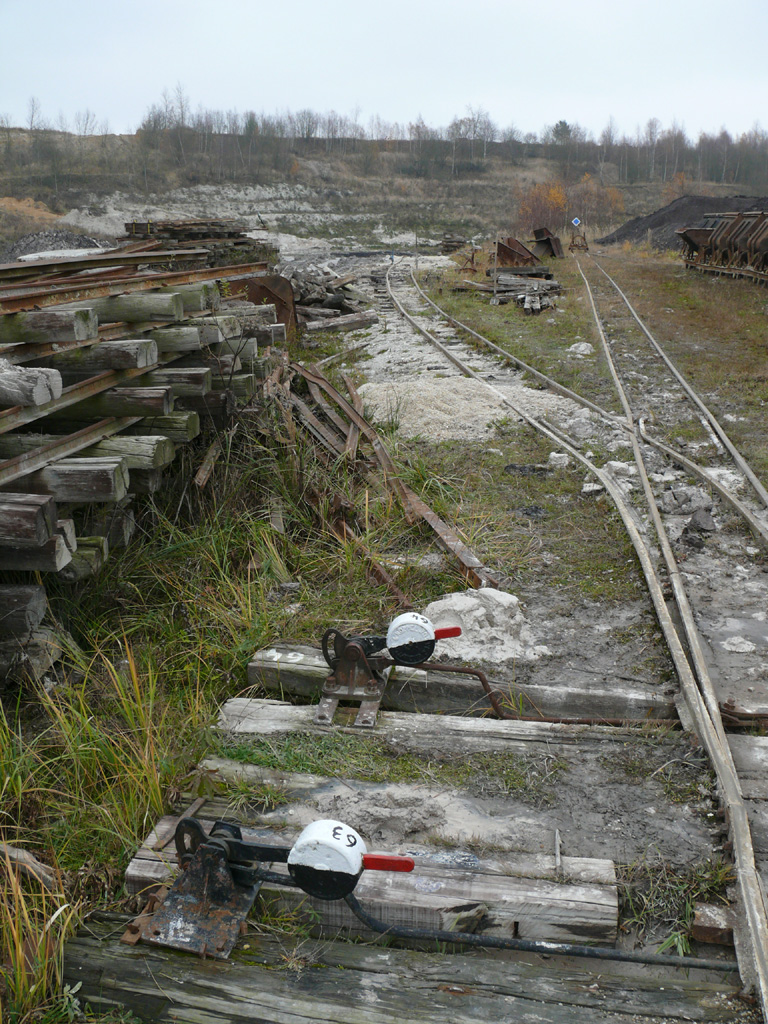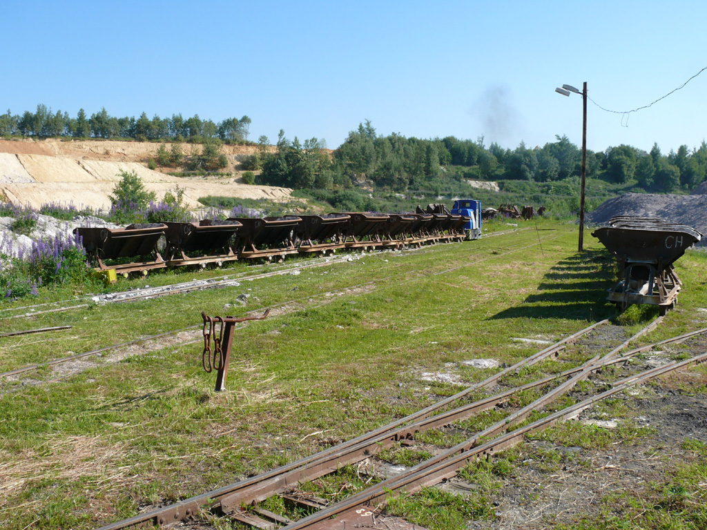 Vozy a lokomotivy odstavené v těžebním prostoru na Nové Vsi