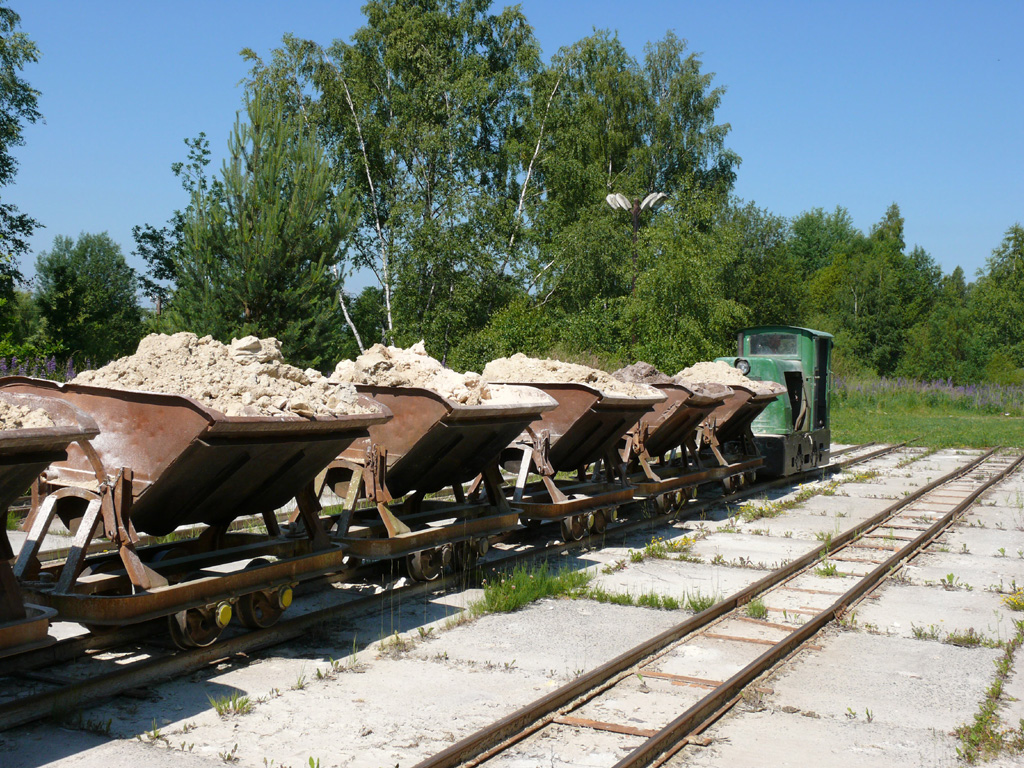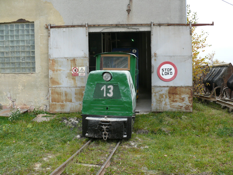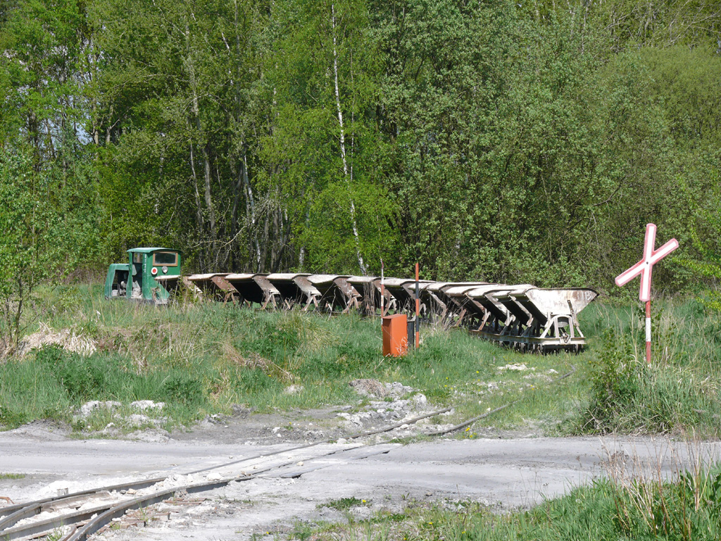 Lokomotiva DNH-I-7-35 L15 (001) odváží soupravu naložených vozů z těžebního prostoru Nová Ves