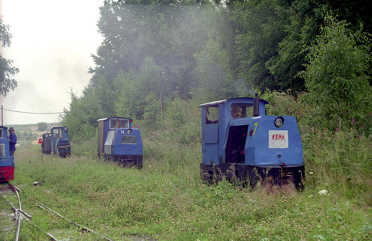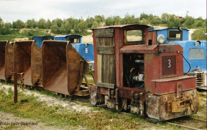 Zleva lokomotivy BN30 L17 (005) s vyvázaným dvojkolím, BN30R L7 (021) a BN30 L9 (12364/1951) před depem na Kateřině