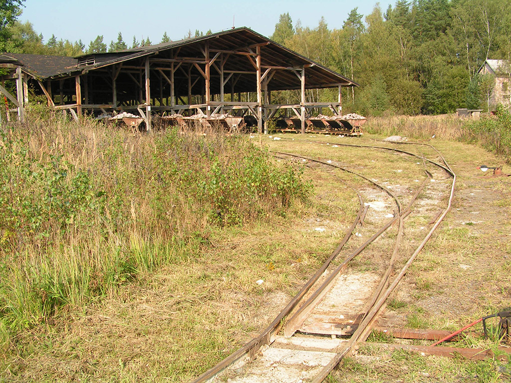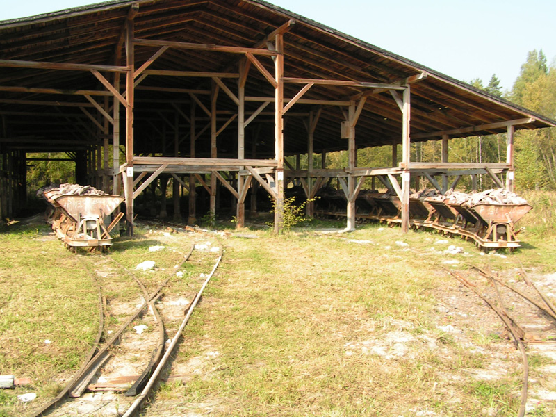 Přístřešky na Kateřině, pod kterými se nechával jíl ve vozících vyschnout