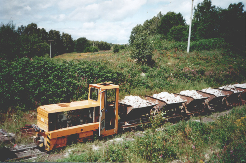BN30 L2 (017) se soupravou ložených vozů ve zpracovatelském závodu ve Vonšově