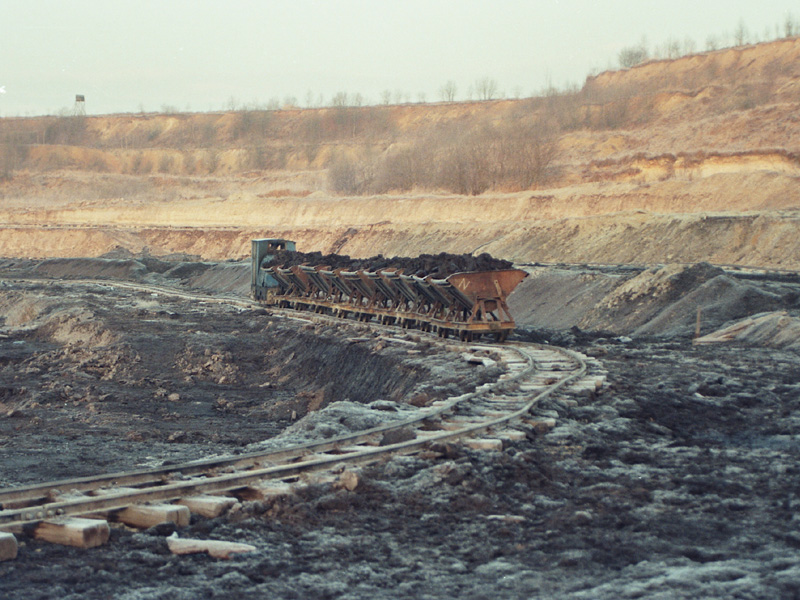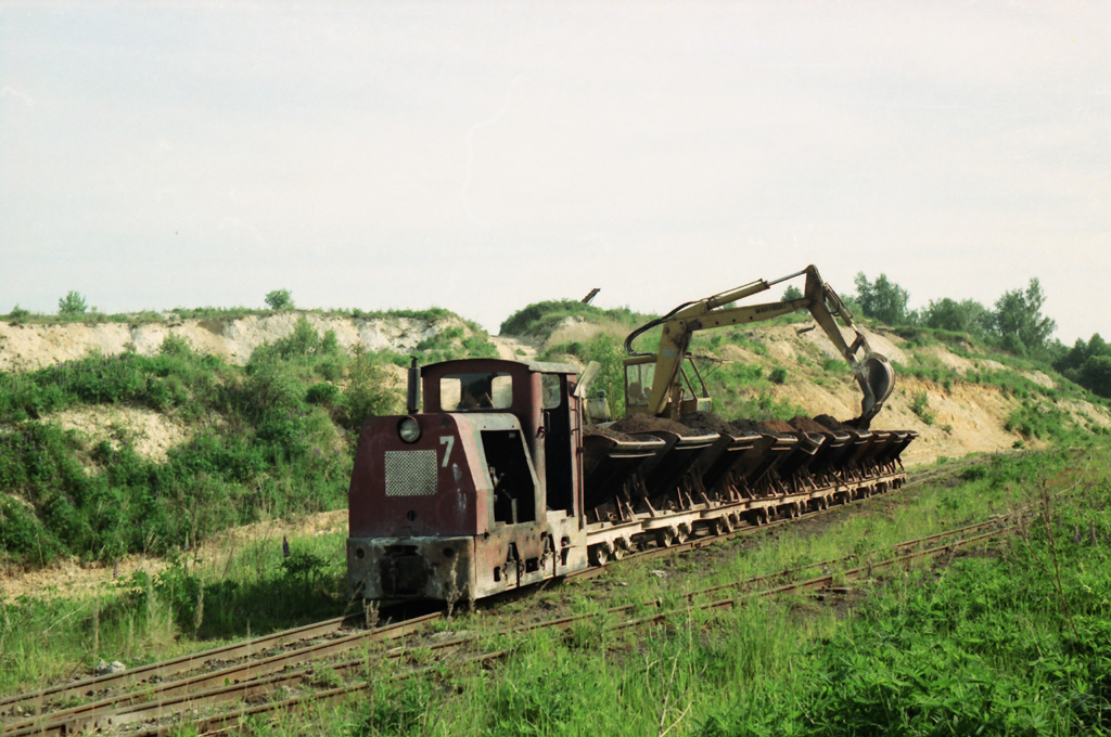 BN30R L7 (021) se soupravou naložených vozů projíždí kolem těžebního prostoru Suchá