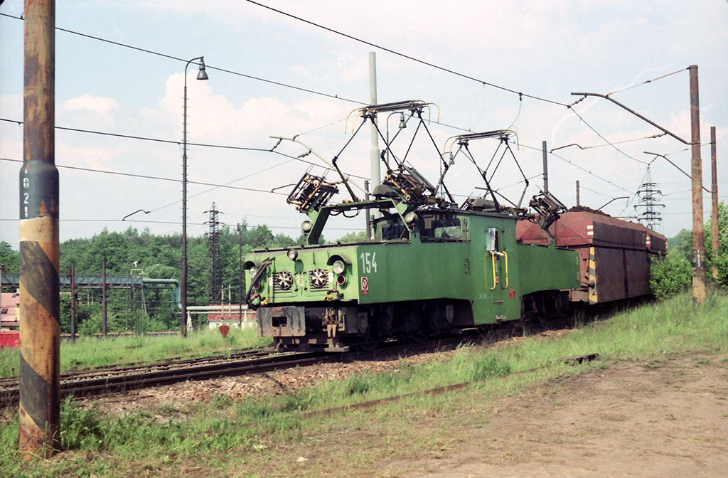 17E č.154 se soupravou ložených vozů ve Svatavě