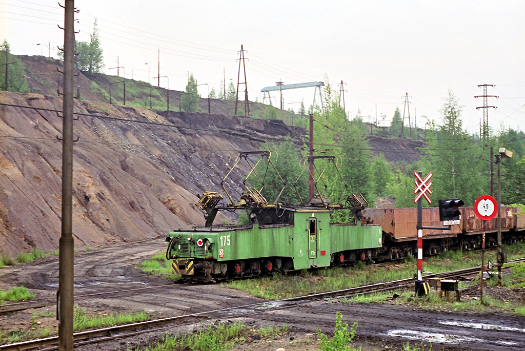 17E č.175 s prázdnými vozy přejíždí přejezd v lomu Medard-Libík