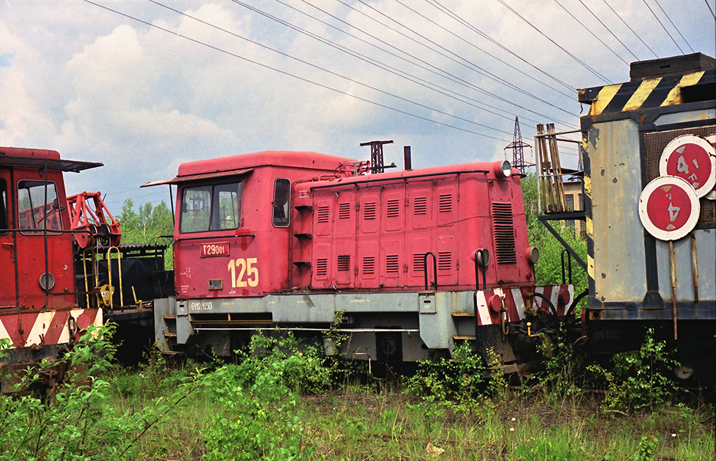 Lokomotiva T29.001 č.125 spolu s dalšími stroji odstavená v Sokolově