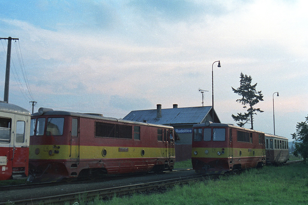 Křižování osobních vlaků s lokomotivami 705.914 (008) (vlevo) a 705.916 (006) ve stanici Slezské Rudoltice