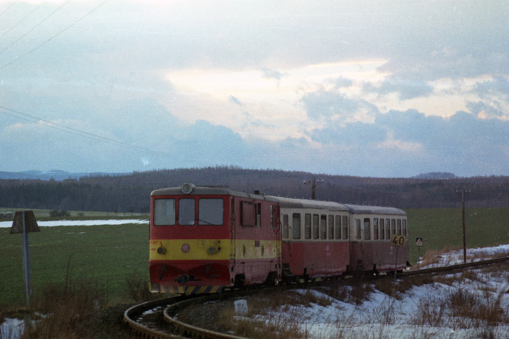 Osobní vlak s lokomotivou 705.917 (005) mezi Amalínem a Slezskými Rudolticemi