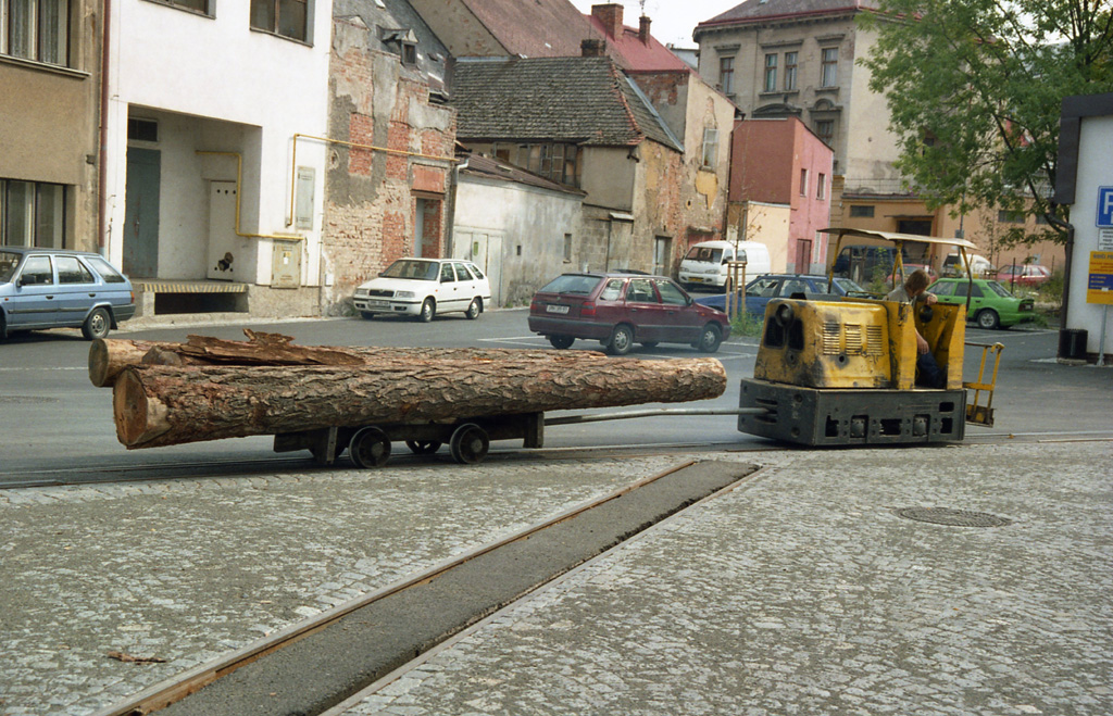 Lokomotiva BN15R (039) s vozem na nákladišti kulatiny